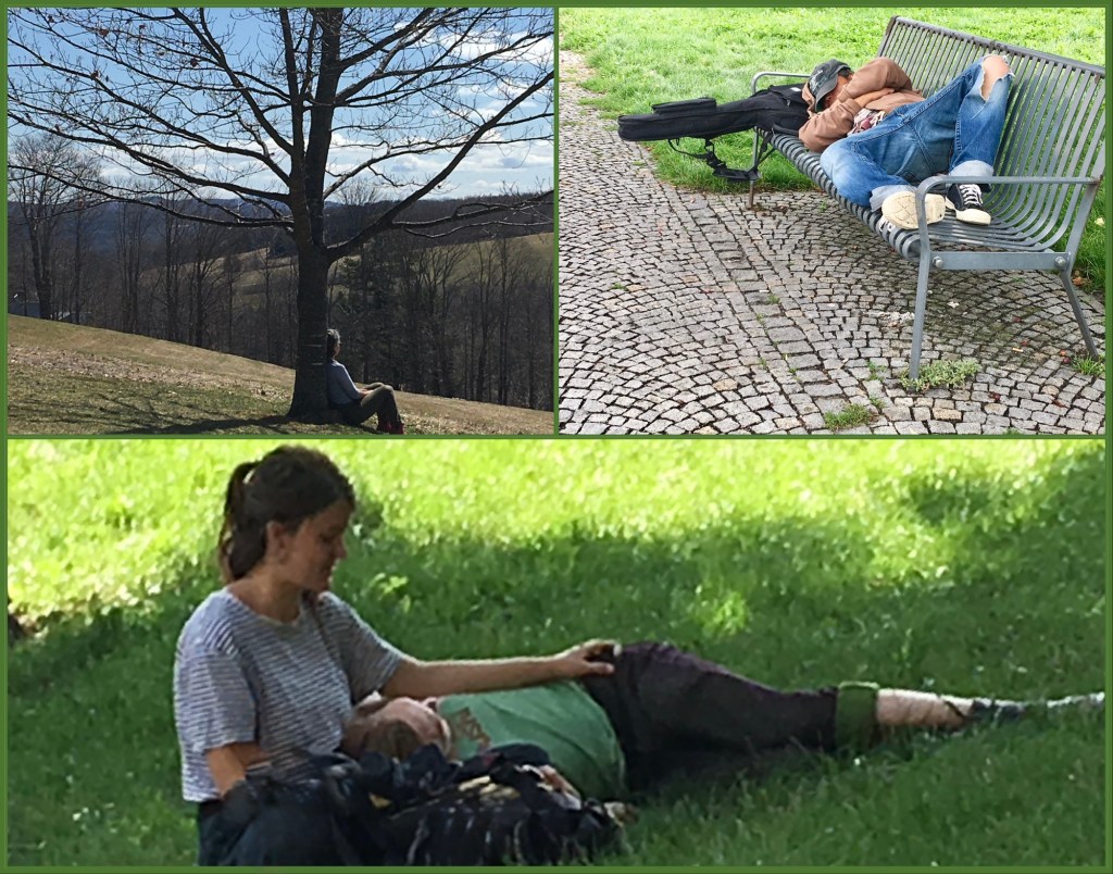 On the grass with a friend, sacked out on a bench with a guitar for a pillow, or leaning against a tree looking out at rolling hills.