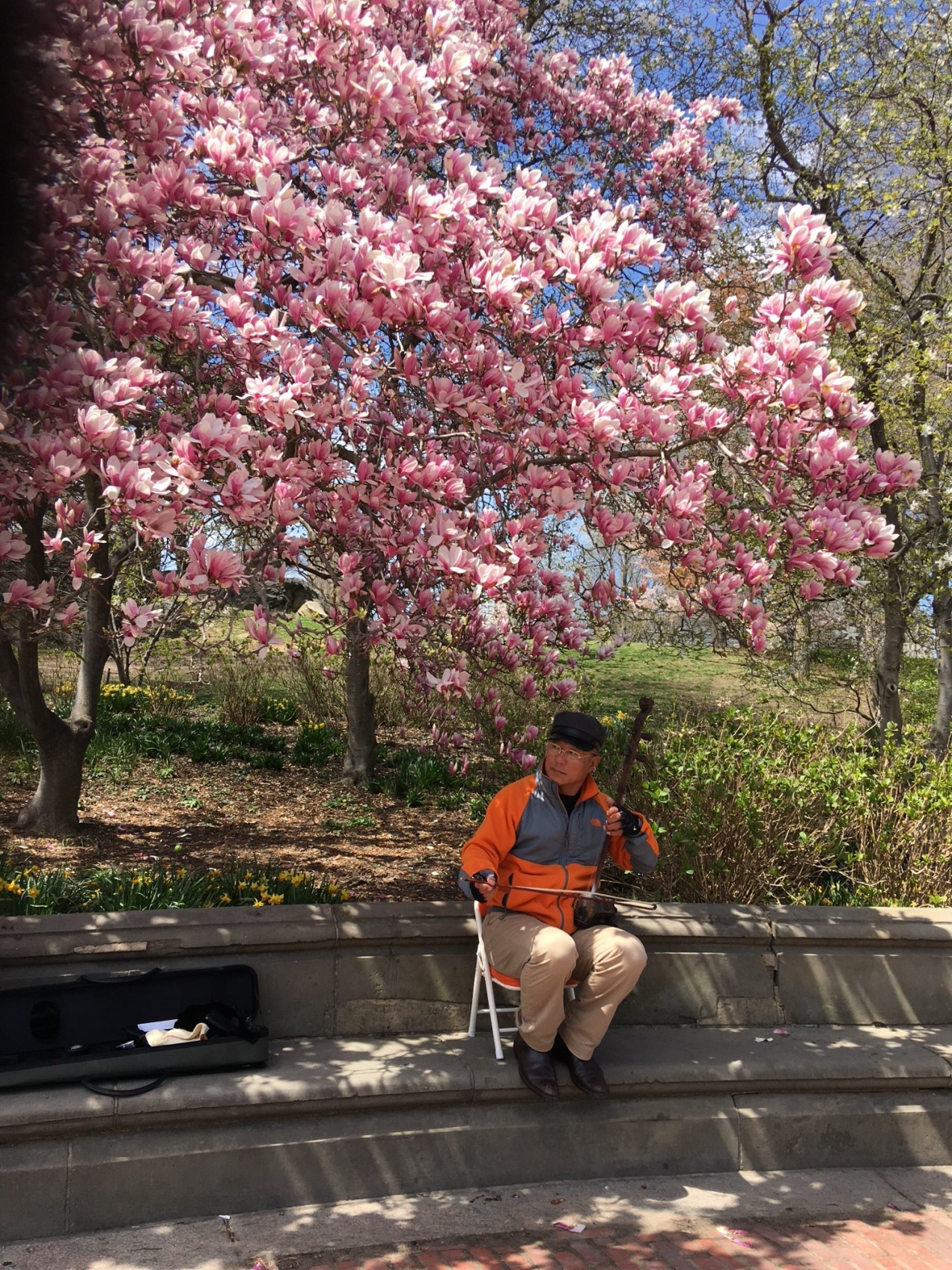 Playing an instrument in a favorite beautiful spot.