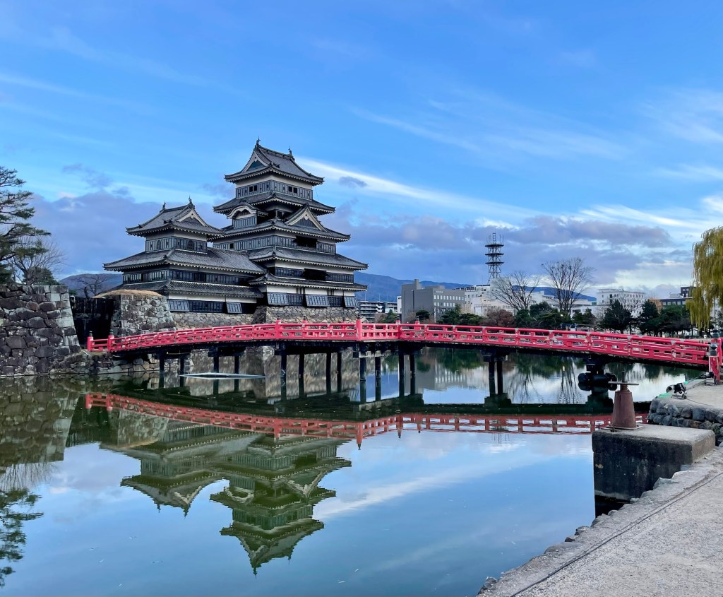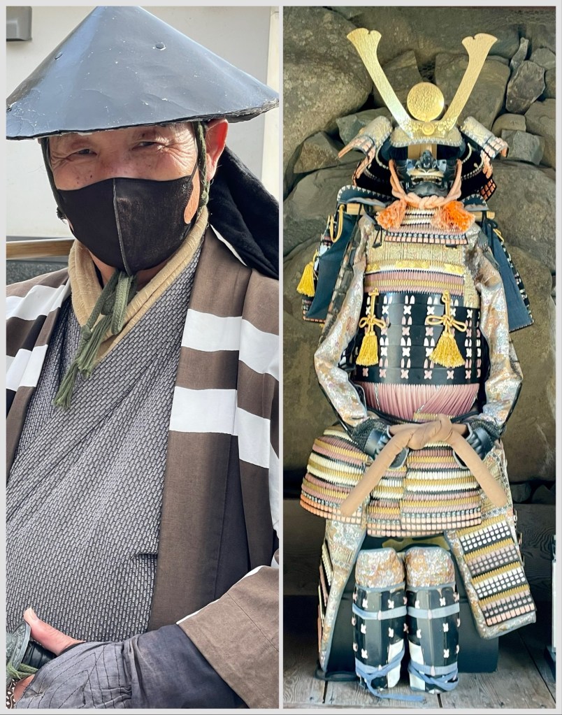 You have to cross the bridge over the moat to get into the castle – that is if you are a warrior.Another view of the castle with a reflection in its moat. Such elegant architecture for an edifice built for protection against enemies.Two guardian warriors, one from the 17th century, the other an actor showing us how the guards protected the castle.