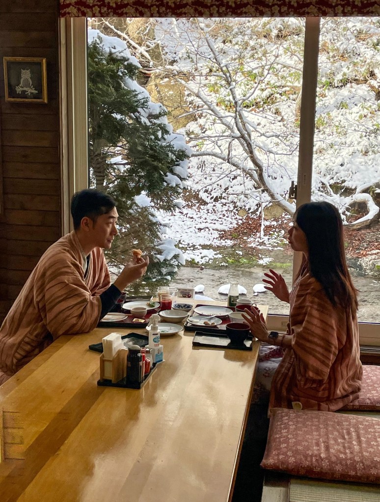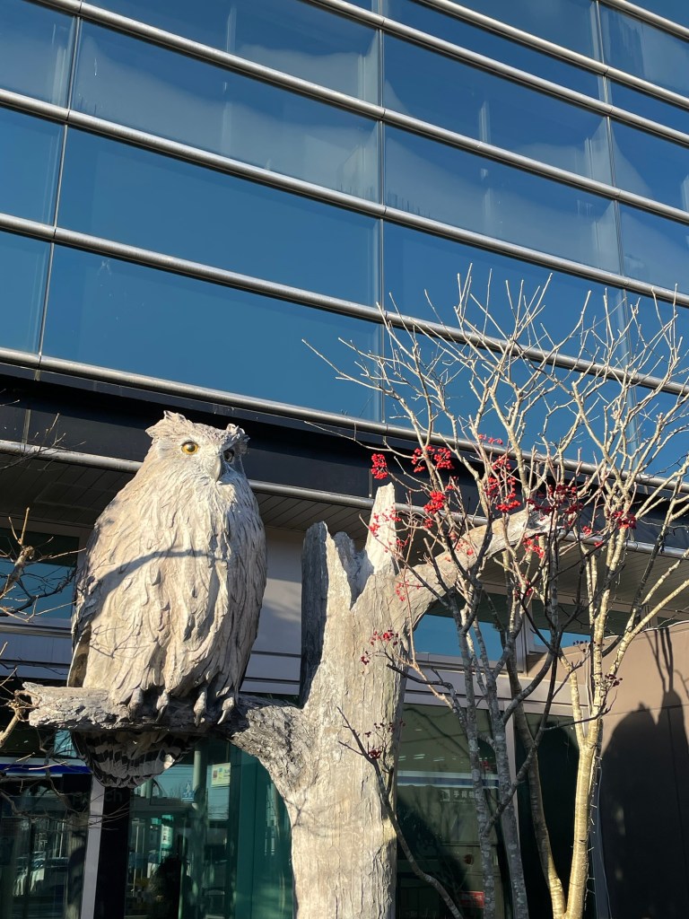 We stayed at a luxurious hotel where people came especially to get a glimpse of the fish owl. The Japanese always know how to arrange things beautifully, from food to flowers to window displays.Breakfast at the hotel.Reflection of a tree in a teacup.Views from the big picture window at the hotel