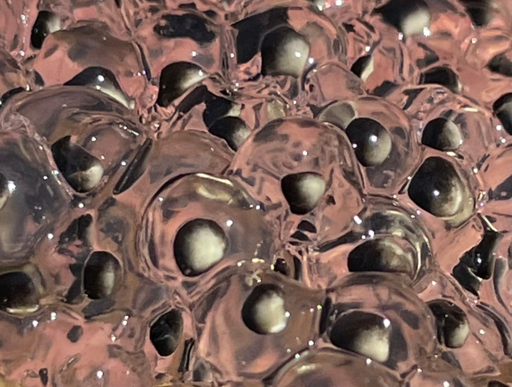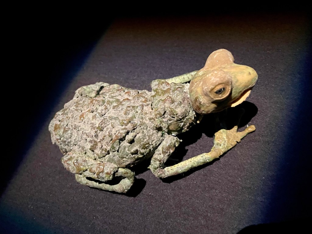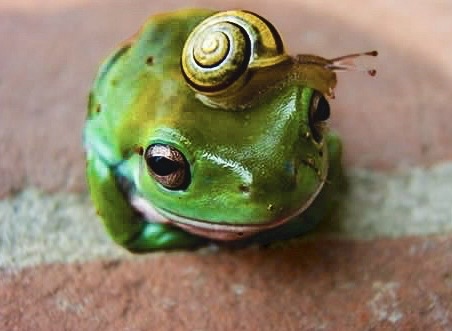 Sometimes I have to carry the frogs across the road myself.If they do make it across they lay their myriads of eggs in the relative safety of vernal pools.Here’s a Costa Rican frog wearing their snail party hat.And this is a frog fossil.
