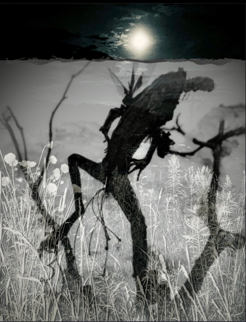 Many of them don’t make it because they get run over by cars. I collect their dried remains. I find them beautiful in a weird kind of way.I call this assemblage “Dead Frog Dancing in the Moonlight”