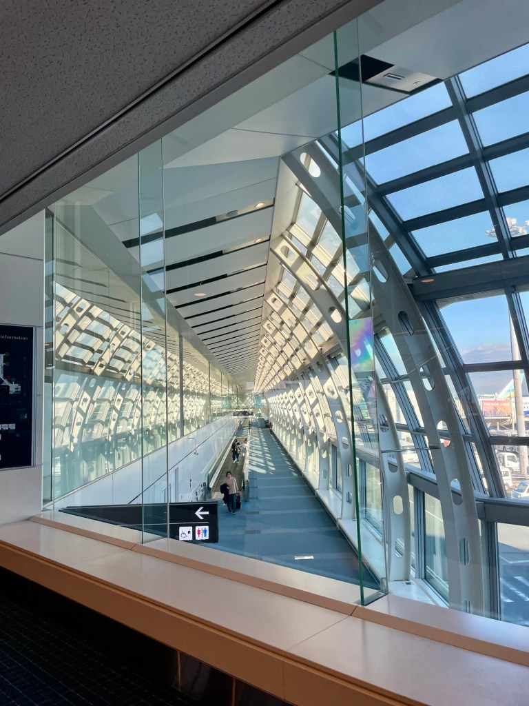 Haneda Airport. Very modernOutside of Tancho Kushiro Airport – We took a short flight in JapanRelaxing with a little foot soak between flights. What a luxury,View from the plane window in the late afternoon.The mountains from the runway.Japanese Pokémon plane