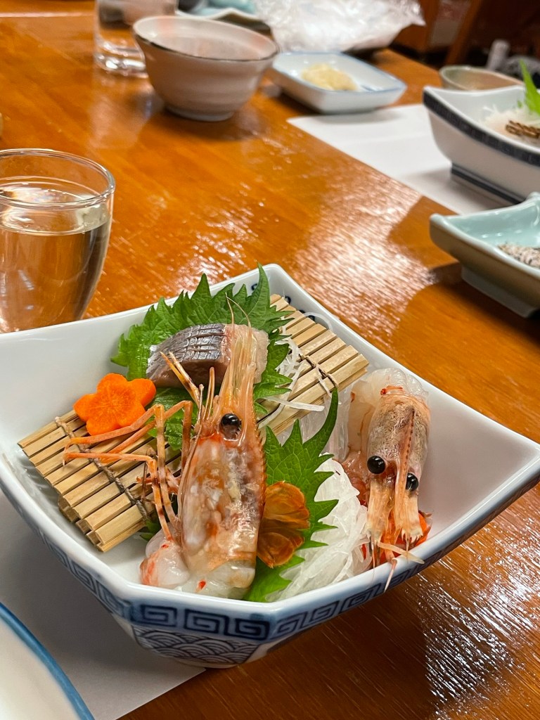 Taken rom the Japanese side of the sea. The mountain is in Russia.A lighthouse in the morning sun.Back to shore. The Japanese love their motorcycles, many of which were manufactured in Japan – Yamaha, Suzuki, Kawasaki. Sounds like a chant.Fish for supper? But of course!Next time, cranes