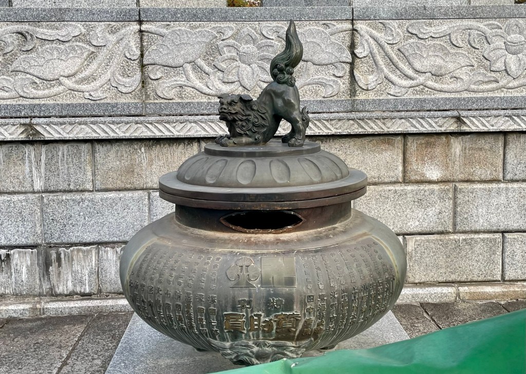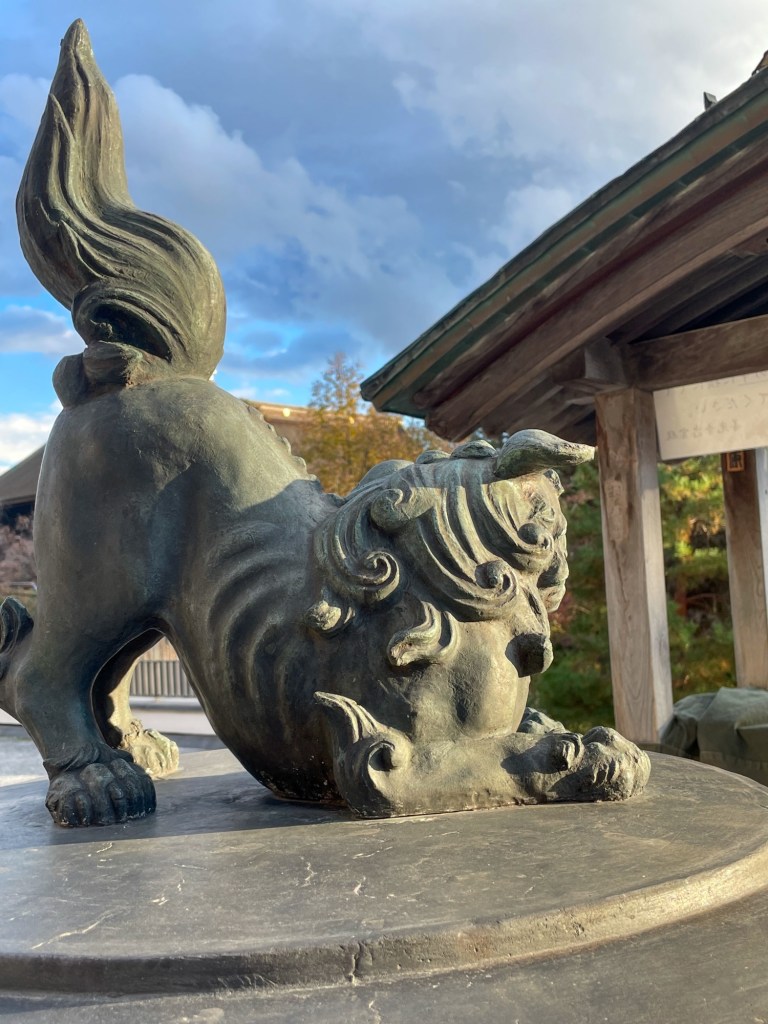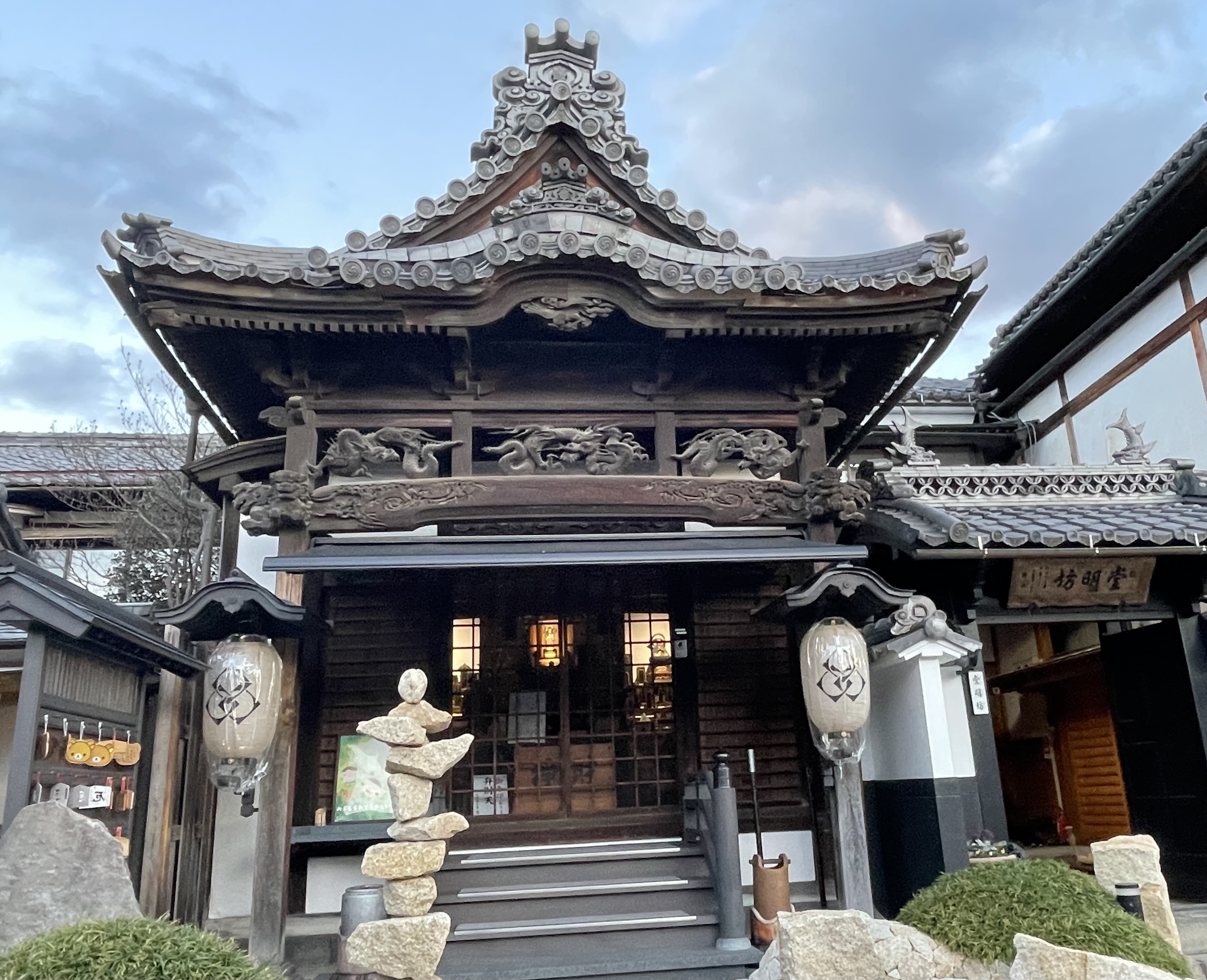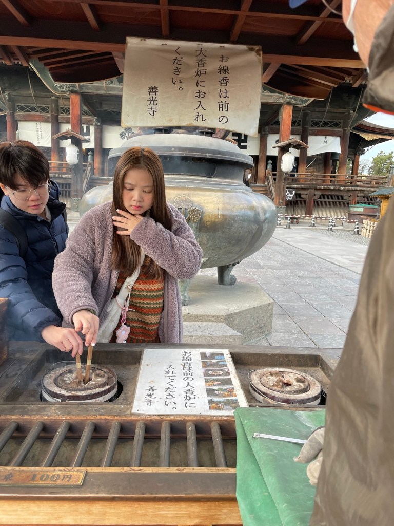 On the left is a rack where cards with wishes written on them for the gods are hung. Kind of like the bits of paper folded and slipped in between the stones in the wailing wall in Jerusalem