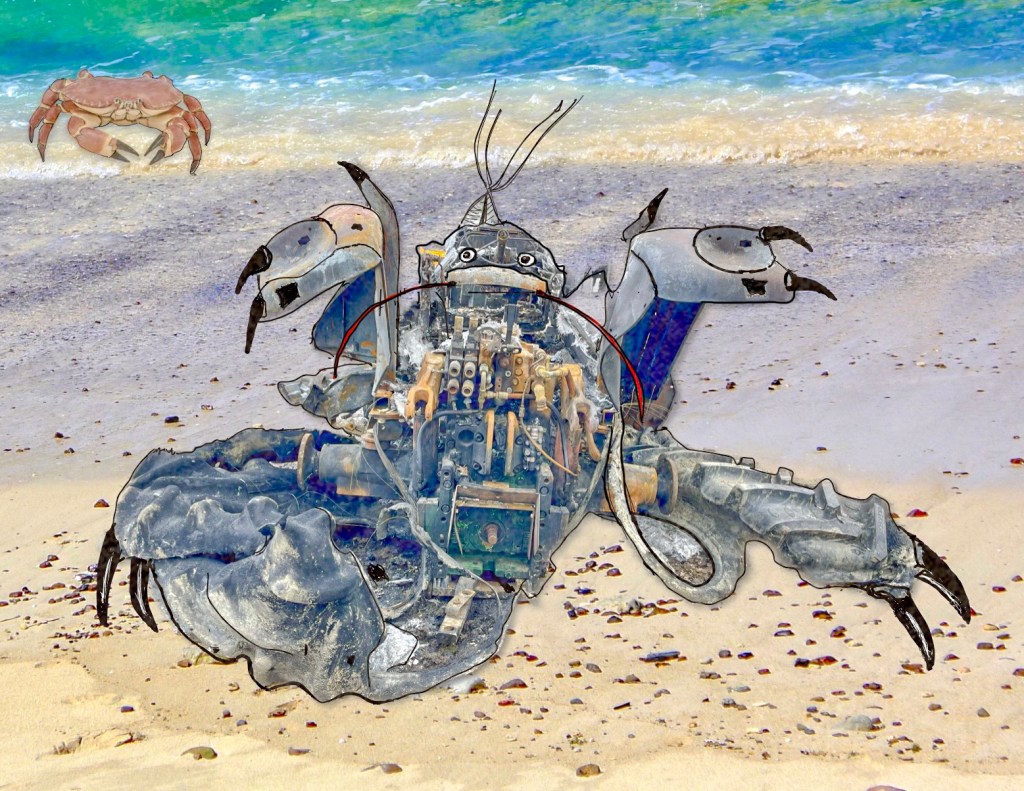 When I looked at it again the tractor had morphed into a sort of fantastical sea creature something between a lobster and a crab.