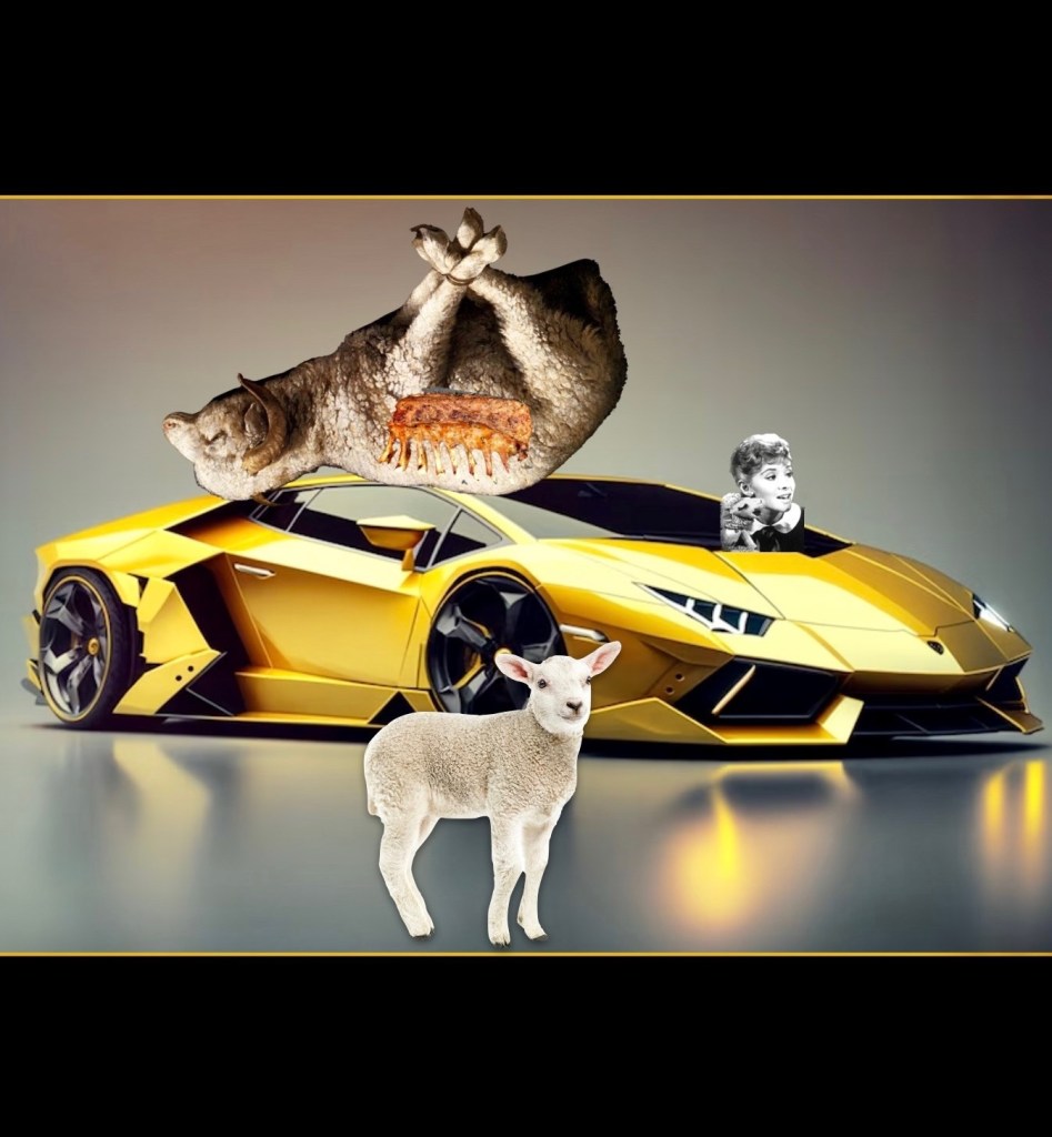 Here is my lamb collage. It turned out a little gruesome which was not my original intention but I guess the sacrificial lamb and the rack of lamb made it so.