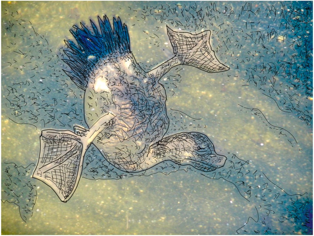After a little more detail work with my Apple Pencil I took a screenshot of the Pages document and went to work on it in Photoshop Express, editing it for colors and mood and a frame of sorts.