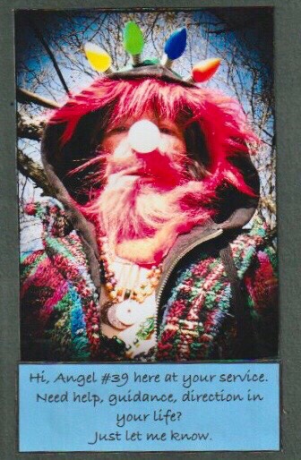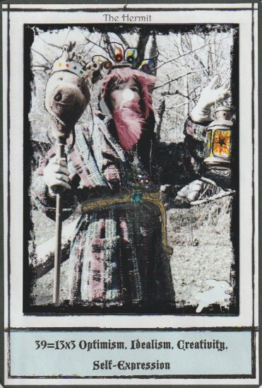 For my friend whose son committed suicide. He loved to go fishing with his little girl.For the husband of a friend who died after living with cancer for many years. May her light be reflected in all the lives she touched.For a friend recovering from heart surgery. May his heart beat steady and strong. (That was an actual part of the tree. I painted it red in the photo.)My clown teacher (yes, I went to clown school last summer) asked her friends to make their own version of the tarot card, “The Hermit” (first photo above) and send it to her for her 39th birthday. The next two photos are my versions. (If you want to see them larger click on an image and then the arrow to go from one to the other.)