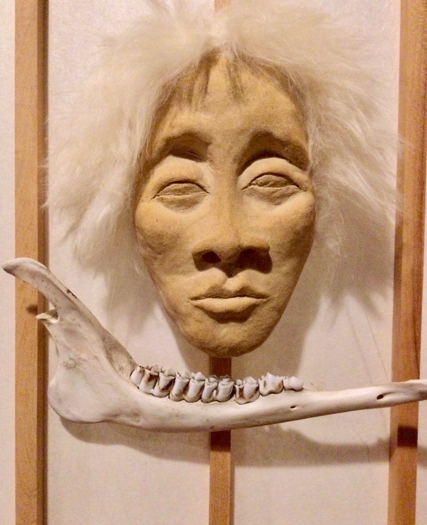 One day during the pandemic when I finally made it to New York I was riding the First Avenue bus uptown and I saw a man in the back of the bus. He had taken off his mask for a moment so I caught a glimpse of his whole face (an unusual event these days). I was mesmerized by it; sculpted and stark…something primal and at the same time so elegant. When I came back home I sculpted him, letting my hands do the remembering. Here he is (with adornments):